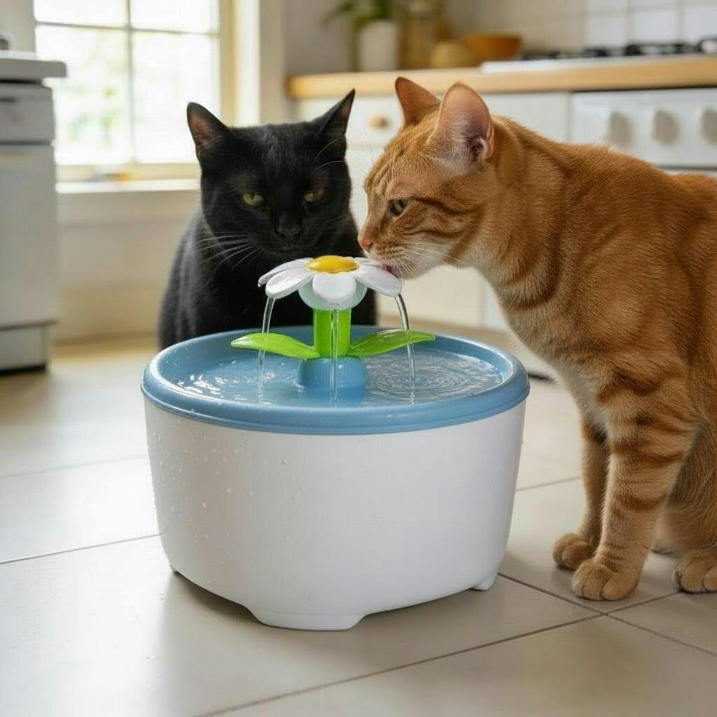 Automatic Pet Water Fountain for Cats – Flower Drinking